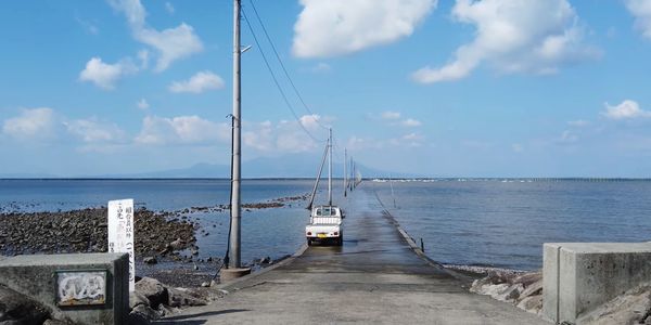Nagabeta Seabed Road is an undersea road that only opens at certain times of day. When low tide comes, the road is visible, but when high tide comes, only the utility poles and electric wires are visible above the surface. One of Kumamoto's most photographed spots, this mysterious undersea road was built in 1974 for fishermen who cultivate seaweed and shellfish in the Ariake Sea. According to legend, the utility poles that emerge from the water inspired the train line in Studio Ghibli's Spirited Away.