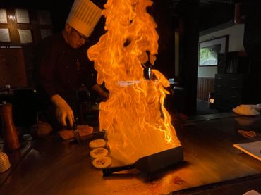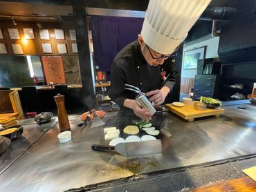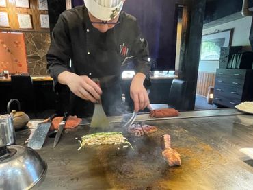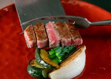 A teppanyaki (hot plate) dining experience featuring carefully selected Kobe and Domaine beef. The restaurant also serves delicious organic vegetables grown by professional farmers in Nishi-ku, Kobe.
