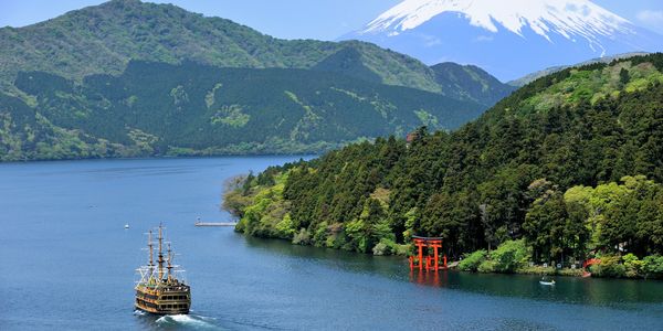 We're going on a super cool trip to Mt. Fuji and Hakone! First, we'll stop by Oshino Hakkai, which is the perfect spot to see Mt. Fuji. Then, we'll head to the Chureito Pagoda, where we can see amazing views of Mount Fuji, especially when the cherry blossoms are blooming or during the fall when the leaves change color. Finally, we'll take a gondola ride to see the steamy vapors from the volcano eruption at Owakudari Valley.